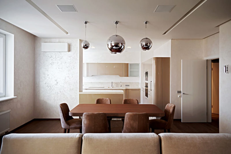 Выбирая светильники, стоит учитывать не только эстетику, но и то, как свет влияет на эмоциональное состояние. Слишком яркий белый свет делает комнату холодной, а чрезмерно тёплый может создавать эффект полумрака.